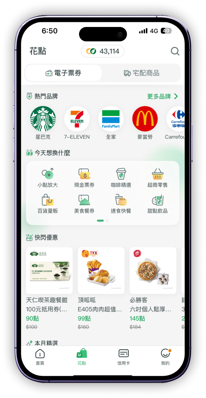 A12:小樹點(生活)可兌換多種優惠,例如 7-11 電子票券、咖啡、甜甜圈等,讓您旅遊回來補充能量!